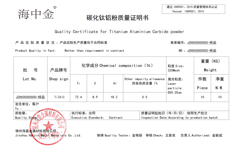 產(chǎn)品名稱:碳化鋁鈦(Ti2AlC)