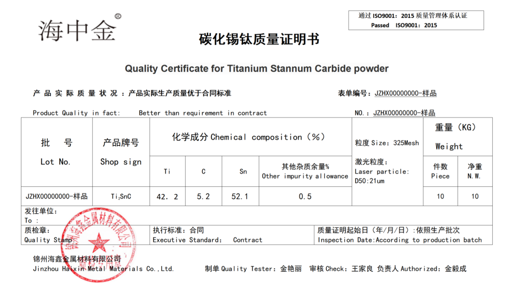 產(chǎn)品名稱:碳化錫鈦(Ti2SnC)