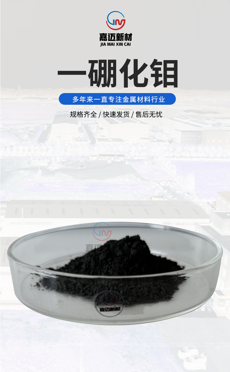 5.硼化鉬熔點(diǎn)在2600℃,可以做耐高溫噴涂層。耐磨性能好,耐熱、電阻與溫度有線性關(guān)系的特種合金,可用于金屬陶瓷、耐磨涂層、高溫電阻、鍋內(nèi)襯、填空噴鍍和耐腐蝕化工設(shè)備,過(guò)渡金屬硼化物在技術(shù)應(yīng)用中是傳統(tǒng)硬質(zhì)合金和高硬材料的潛在替代品。并且隨著科學(xué)技術(shù)的進(jìn)步,硼化鉬系化合物的應(yīng)用領(lǐng)域還將進(jìn)一步被拓展,這種材料將展現(xiàn)出更加優(yōu)良的應(yīng)用價(jià)值和巨大的市場(chǎng)前景。