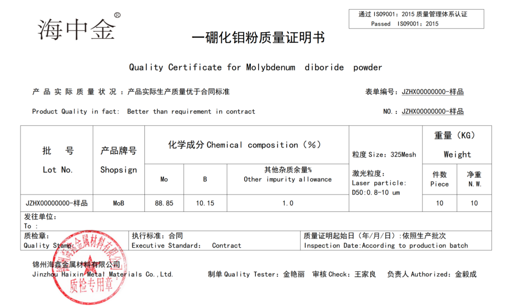 產(chǎn)品名稱:一硼化鉬(MoB)