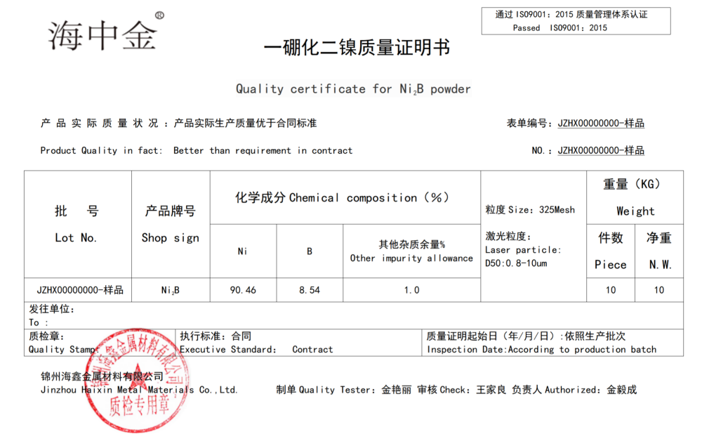 產(chǎn)品名稱:一硼化二鎳(Ni2B)