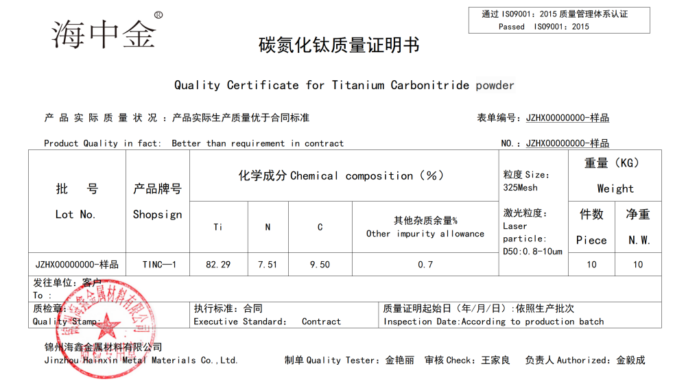 產(chǎn)品名稱:碳氮化鈦(TiCN)