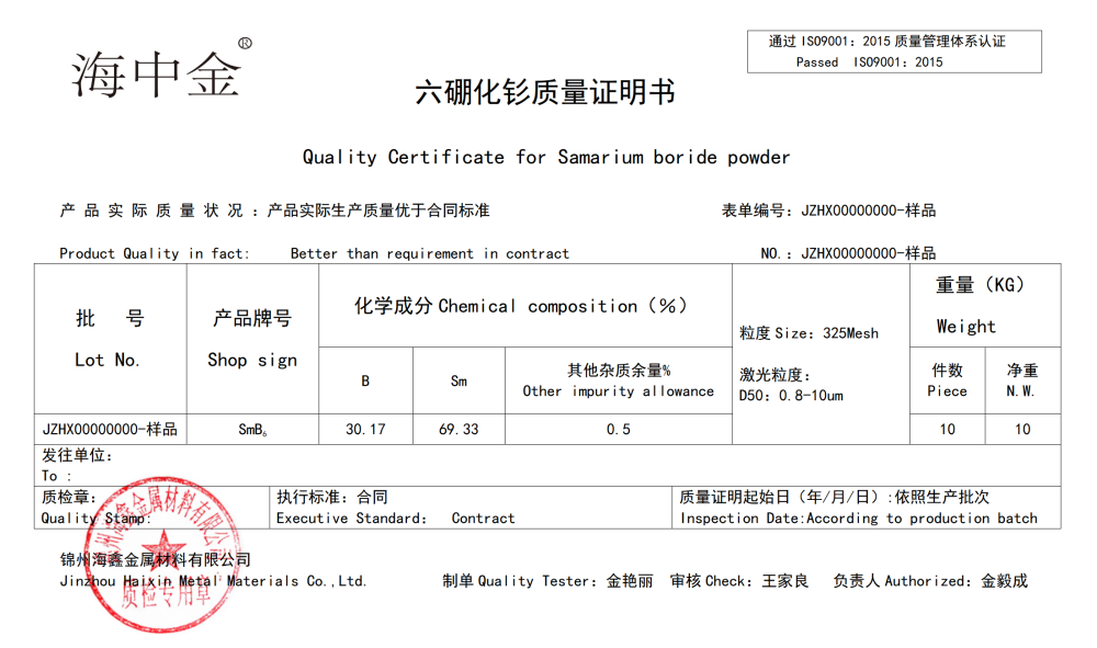產(chǎn)品名稱:六硼化釤(SmB6)