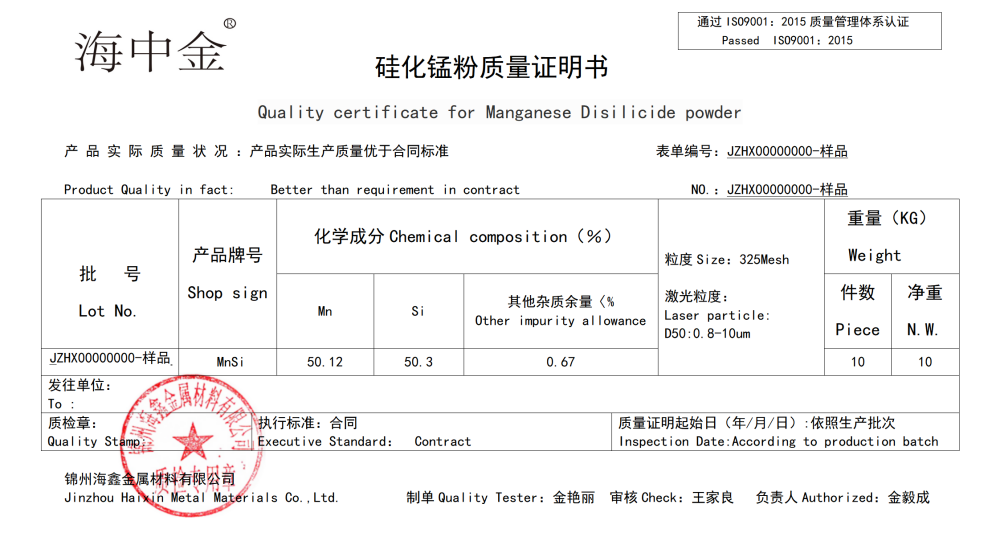 產(chǎn)品名稱:二硅化錳(MnSi2)
