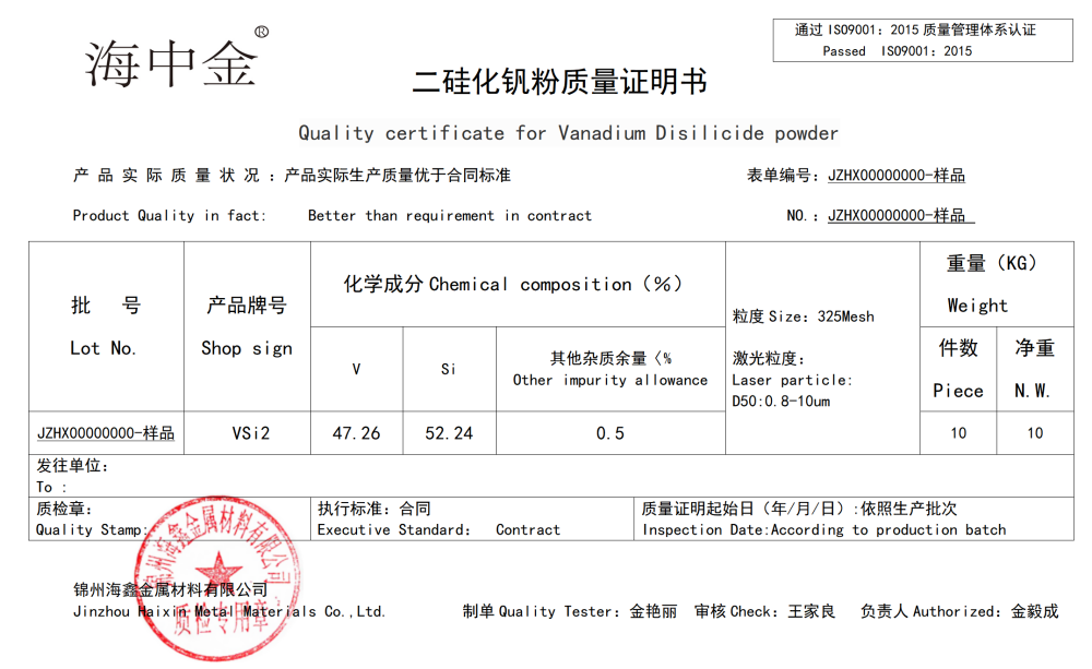 制備 :由按配比的金屬釩和單質硅在惰性氣體防護下經(jīng)高溫直接反應而得。